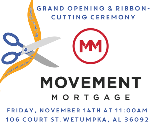 Join us for Movement Mortgage's Grand Opening & Ribbon-Cutting Ceremony on November 14th at 11 AM! We are so thrilled to be a part of this special day, and we invite you to come celebrate this incredible milestone!